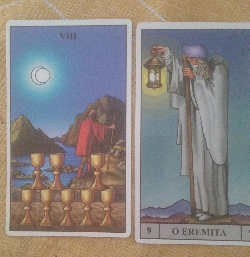 A leitura estará incompleta sem o seu par, aqui no caso o Eremita. Os arcanos maiores são de mais fácil digeribilidade. São símbolos tão arraigados que o sentido em si salta aos olhos, com dois cuidados necessários: atentar para a plurivocidade já referenciada acima, que obviamente também aparece aqui, e para o fato de que surgem em uma tiragem diante dos grandes temas, ao contrário do caráter mais cotidiano e trivial dos arcanos menores.